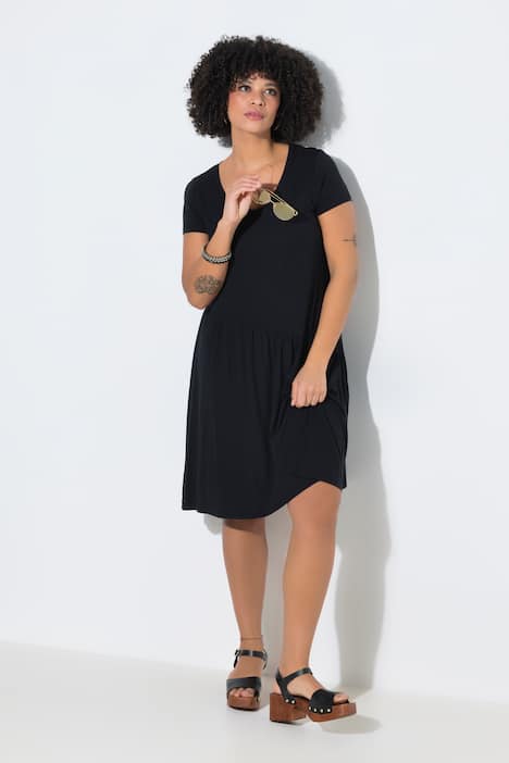 Asymmetric Flounce Panel Short Sleeve Jersey Dress