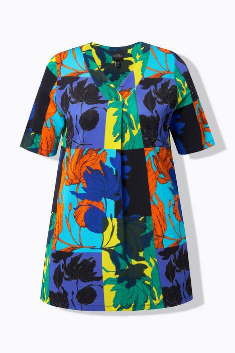 Patchwork Leaf Print Short Sleeve Slinky Top