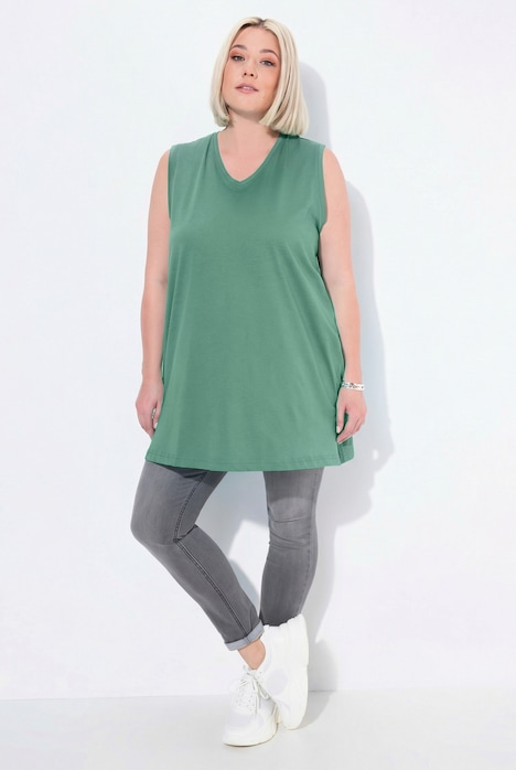 Basic V-Neck Knit Tank - popular V-neck cut in a soft lightweight cotton knit. Comfort cut arm holes provide coverage where you need it. Perfect layering piece. Side vents.