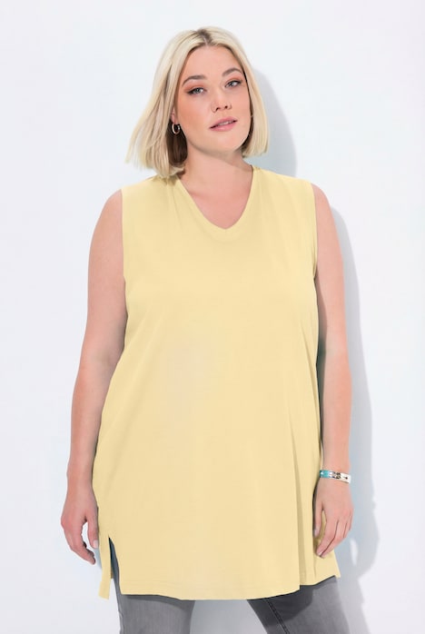 Basic V-Neck Knit Tank - popular V-neck cut in a soft lightweight cotton knit. Comfort cut arm holes provide coverage where you need it. Perfect layering piece. Side vents.